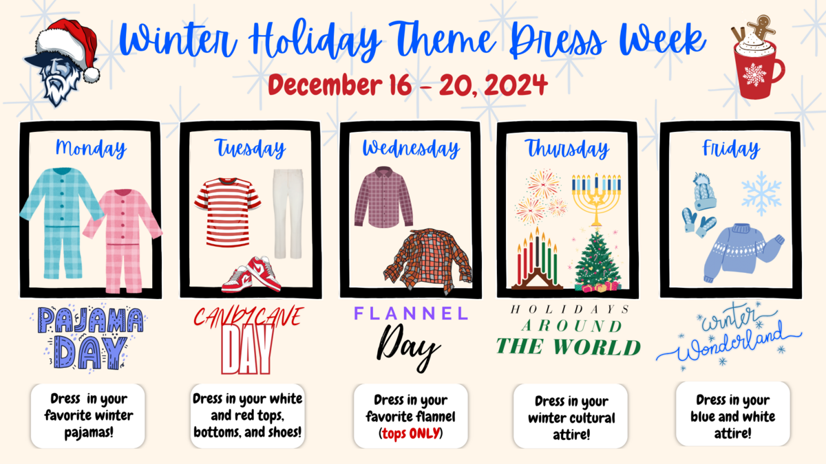 - Monday: Pajama Day – Favorite winter pajamas!